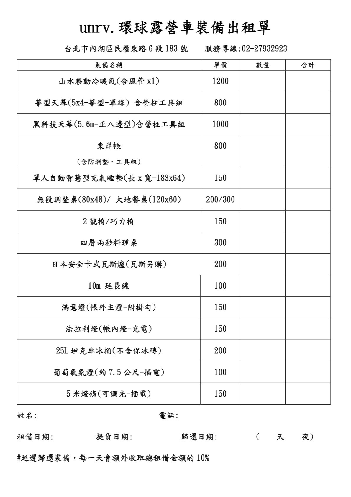 =>告訴我們借/還日期、確認裝備品項及數量