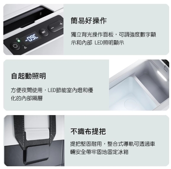 內嵌導向槽可用安全帶或繫帶將冰箱固定於車內,提升安全