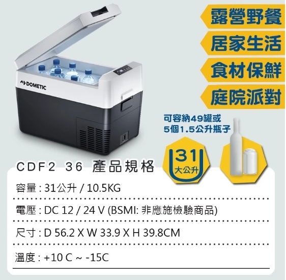 ●容量 31 L,可容納約 49 罐飲料或五瓶 1.5 L 水瓶